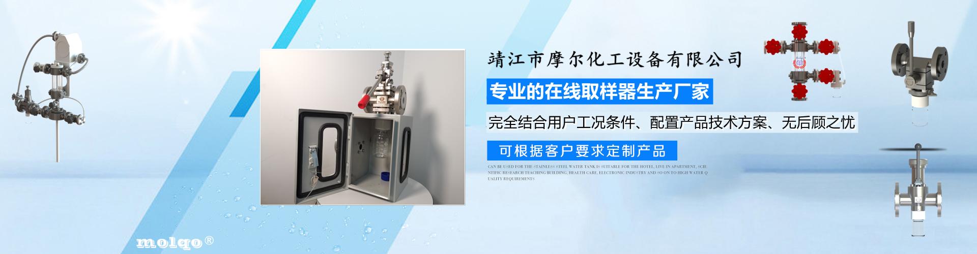 靖江市摩爾化工設備有限公司位于蘇中明珠——江蘇省靖江市城南工業園區東進路北側天元艾爾瑞內,另有生產基地位于靖江市經濟技術開發區新號路1號鼎電科技園內。我公司由數名長期從事化工生產、氟塑襯里模具開發以及機械自控設備的專業人員共同合作成立,致力于提供客戶最優的高效在線取樣、反應及精餾分離設備,為客戶提供合理的設備選型方案,以幫助客戶提高綜合生產效率以及改善生產現場環境為目標。 本公司主要制造及銷售的產品有:釜用在線取樣裝置,管道取樣閥,釜用清洗噴淋裝置、搪玻璃設備、GMP專用搪玻璃設備、氟塑襯里設備、攪拌器、釜用機械密封、氣動閥門及搪玻璃管道、襯氟閥門管道、非標不銹鋼容器,精餾塔塔器、片式冷凝器及PTFE密封件、鋯、鈦、鉭、鎳等加工件制品。我司是一家集研發銷售、設計咨詢服務于一體的專業···| 原平市 | 泸州市 | 扶余县 | 雅安市 | 舞阳县 | 丹江口市 |